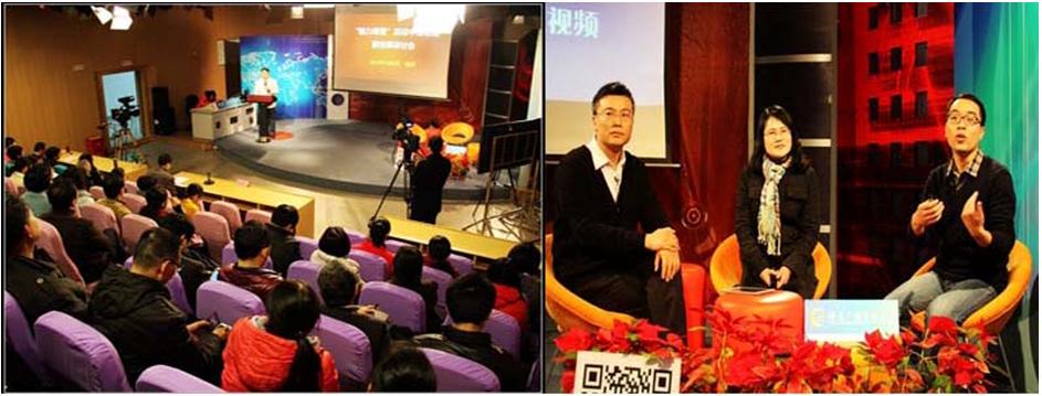 此次研讨会设置了“微课三人谈”的重要环节,为满足3人交谈的拍摄要求和IPAD无线传输的要求,技术人员积极做好技术支持服务工作,一方面,对场景精心布置,严格控制灯光布置,避免对屏幕效果造成干扰;另一方面,布置无线WIFI,通过苹果盒子、音频光纤数模转换等,测试无线传输效果,满足多系统信号的转换要求,同时对照会议流程,提前彩排,避免各种衔接漏洞,保证会议正常进行。会后技术人员还将对所拍摄的节目进行后期编辑处理,并将编辑好的视频传到网上方便大家观看。