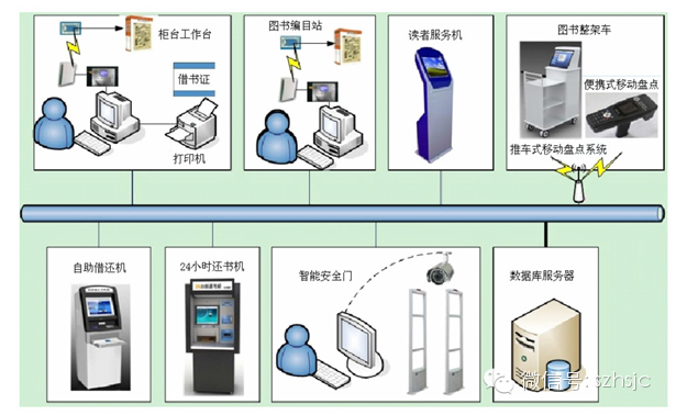 各个子系统各自完成相对独立的功能,连接使用同一个数据库,通过 RFID智能数字图书馆网络,相互协作构成一个完整的 RFID 智能数字图书馆系统。