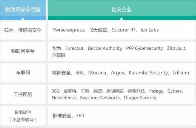 常见的物联网企业主要分布在芯片、传感器安全,物联网平台安全,车联网安全,工控安全和智能硬件安全领域。