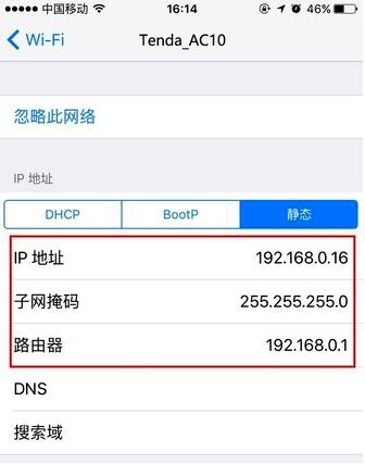 手机方面:我们可以尝试在手机进行以下设置:设置——WiFi——点击这个WiFi最右边“蓝色感叹号圈圈”——IP地址选择为【静态】,然后根据路由的设置,输入相关参数。