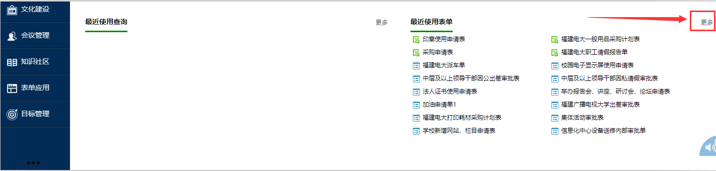2. 在页面右侧的“最近使用表单”,点击【更多】链接,如下图。