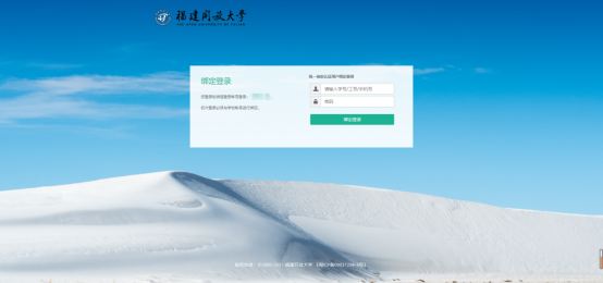 3、 首次使用需要进行账号绑定,教职工的登录账号为手机号码/工号,学生的登录账号为学号/身份证件号。初始密码统一为身份证后八位,有“X”的为大写。