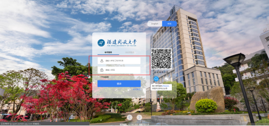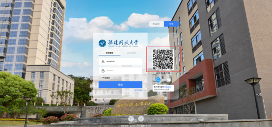 1、 打开浏览器,访问智慧校园平台,地址为https://i.fjou.edu.cn,首次使用,需要在登录界面中,点击二维码下方的“点击此处”按钮,进行微信扫码。