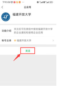2、对于已关注“福建开放大学”微信企业号的,可直接点击右上角【登录】按钮,即可免密登录。